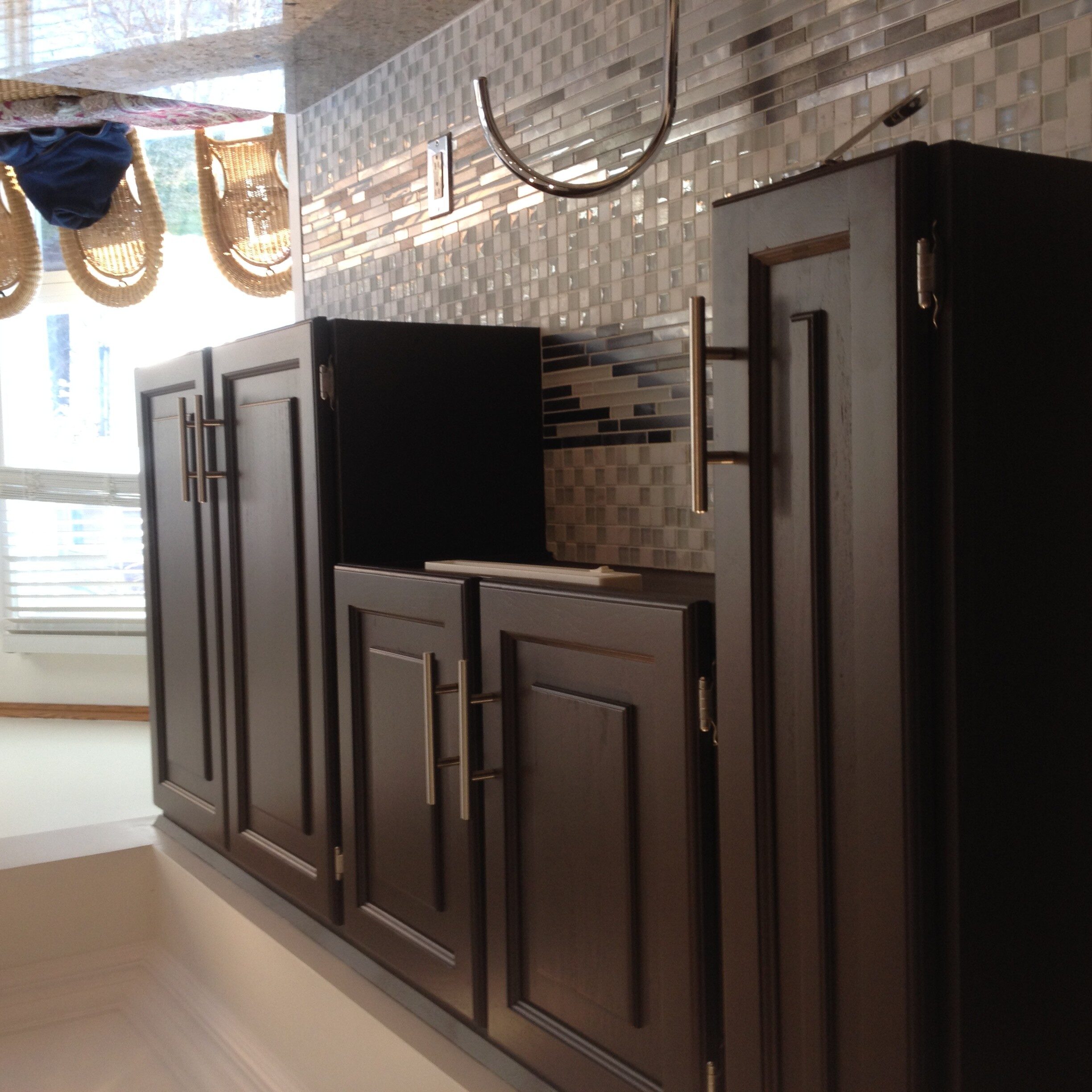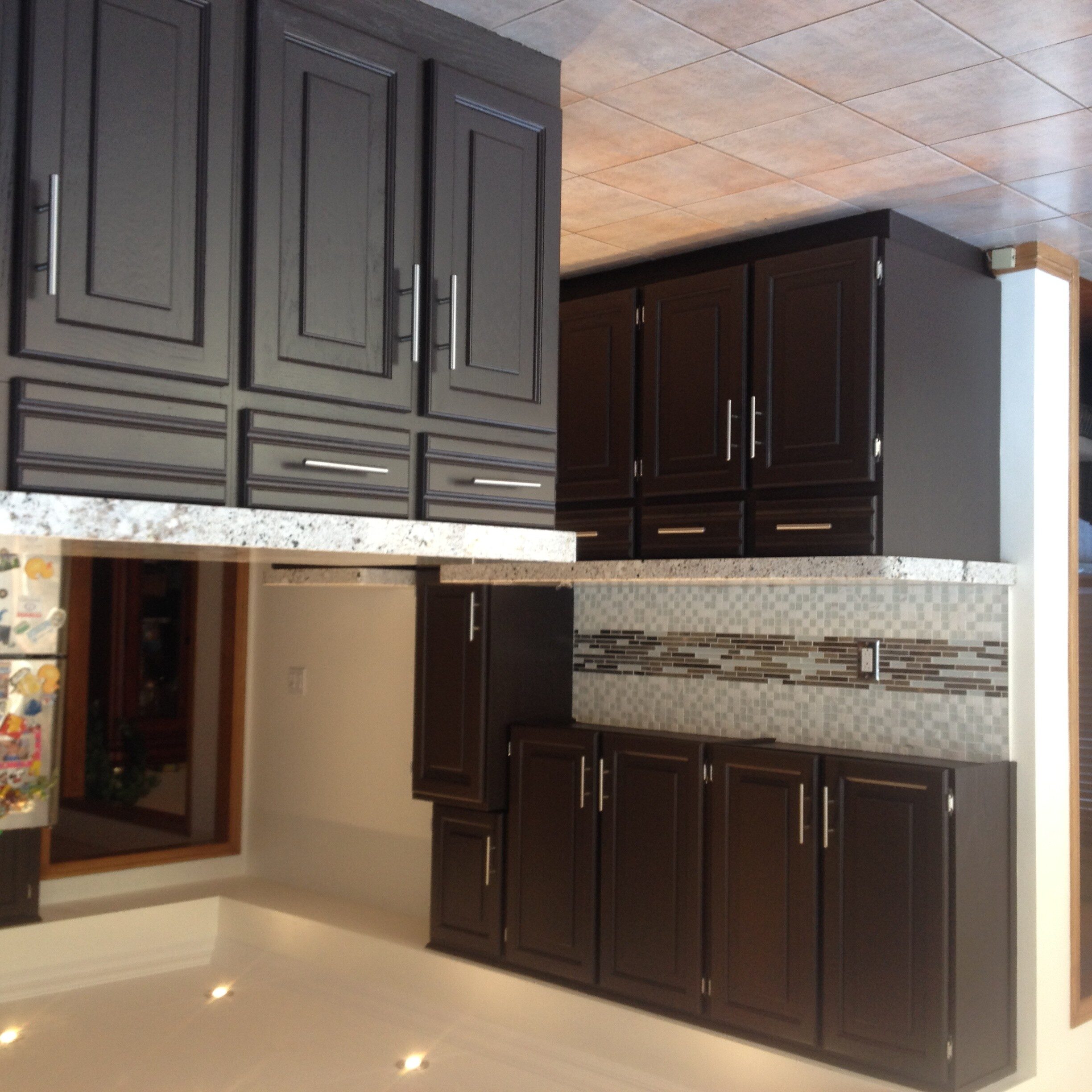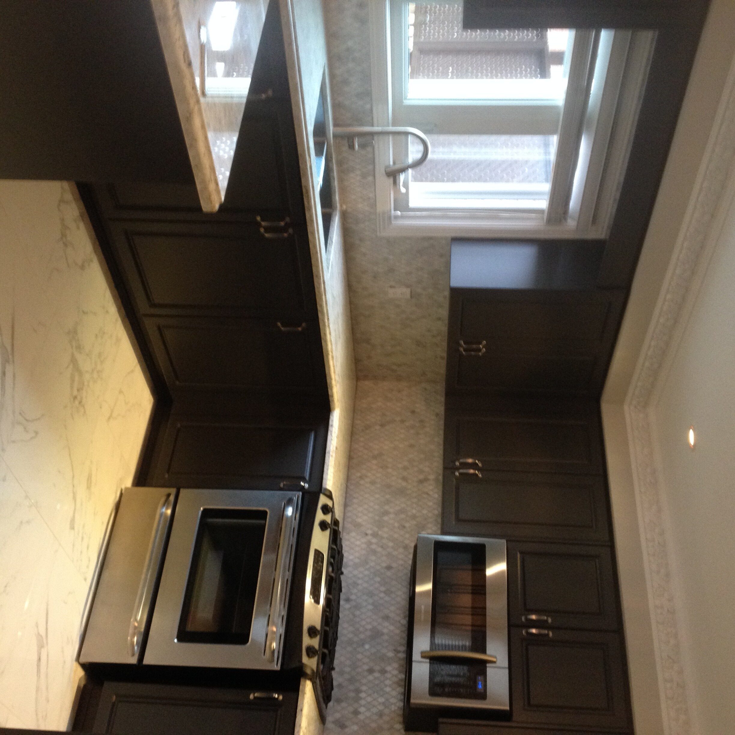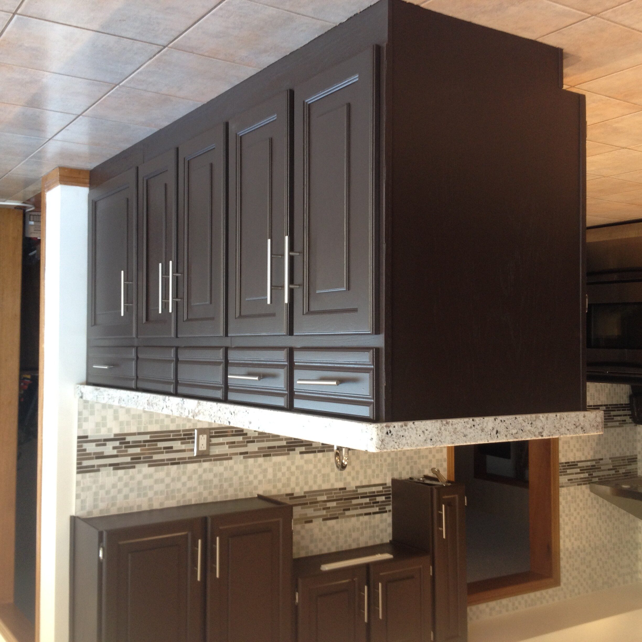 A) Take them off: Remove, label doors and all other hardware. See our blog post on Tips for Painting Kitchen Cabinets for more information about this.
