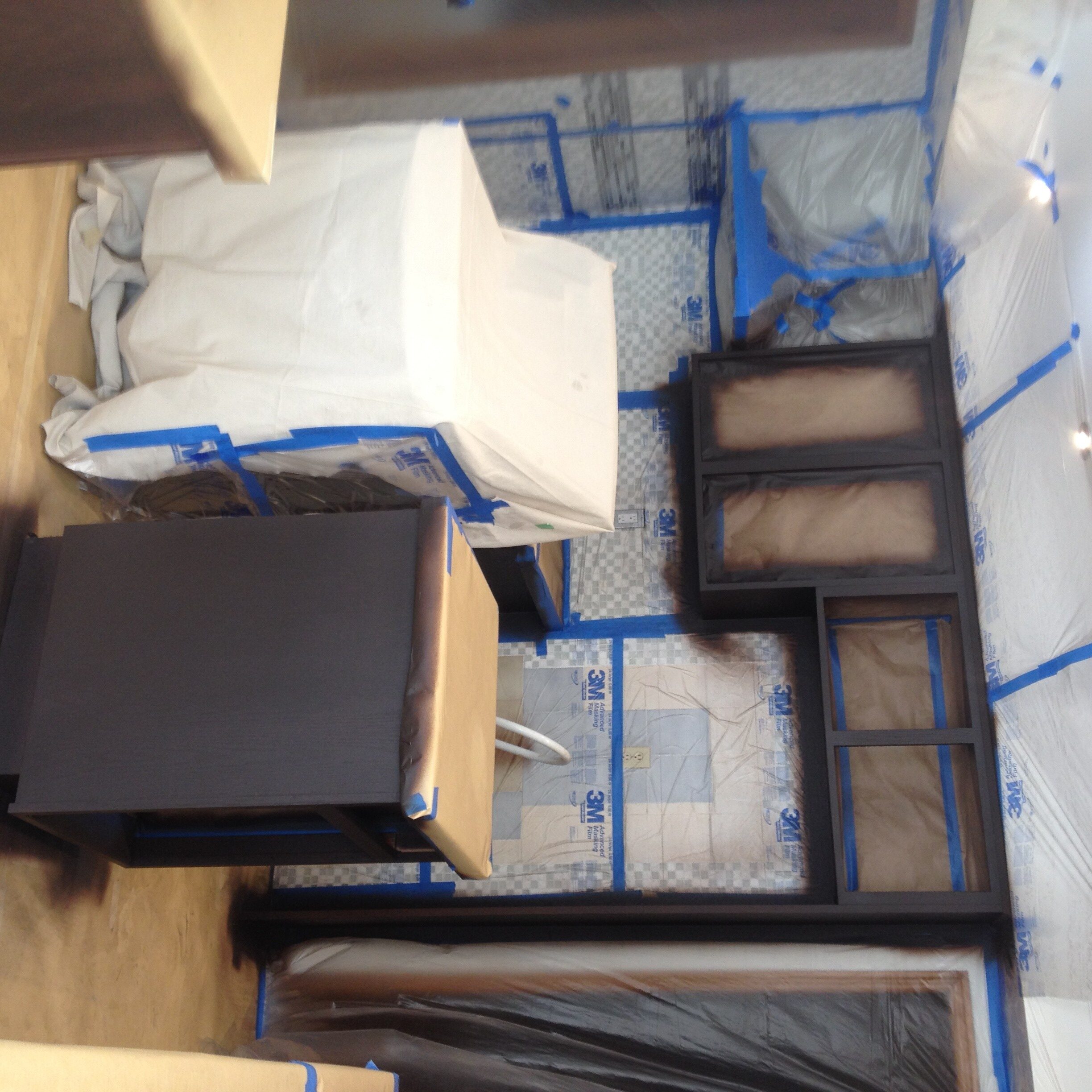 You can see why using a paintbrush and consumer-grade products is a problem because after every coat of paint you need to wait 24 hours before you can “really” work on them. It takes 8 days just to paint the doors and drawers.