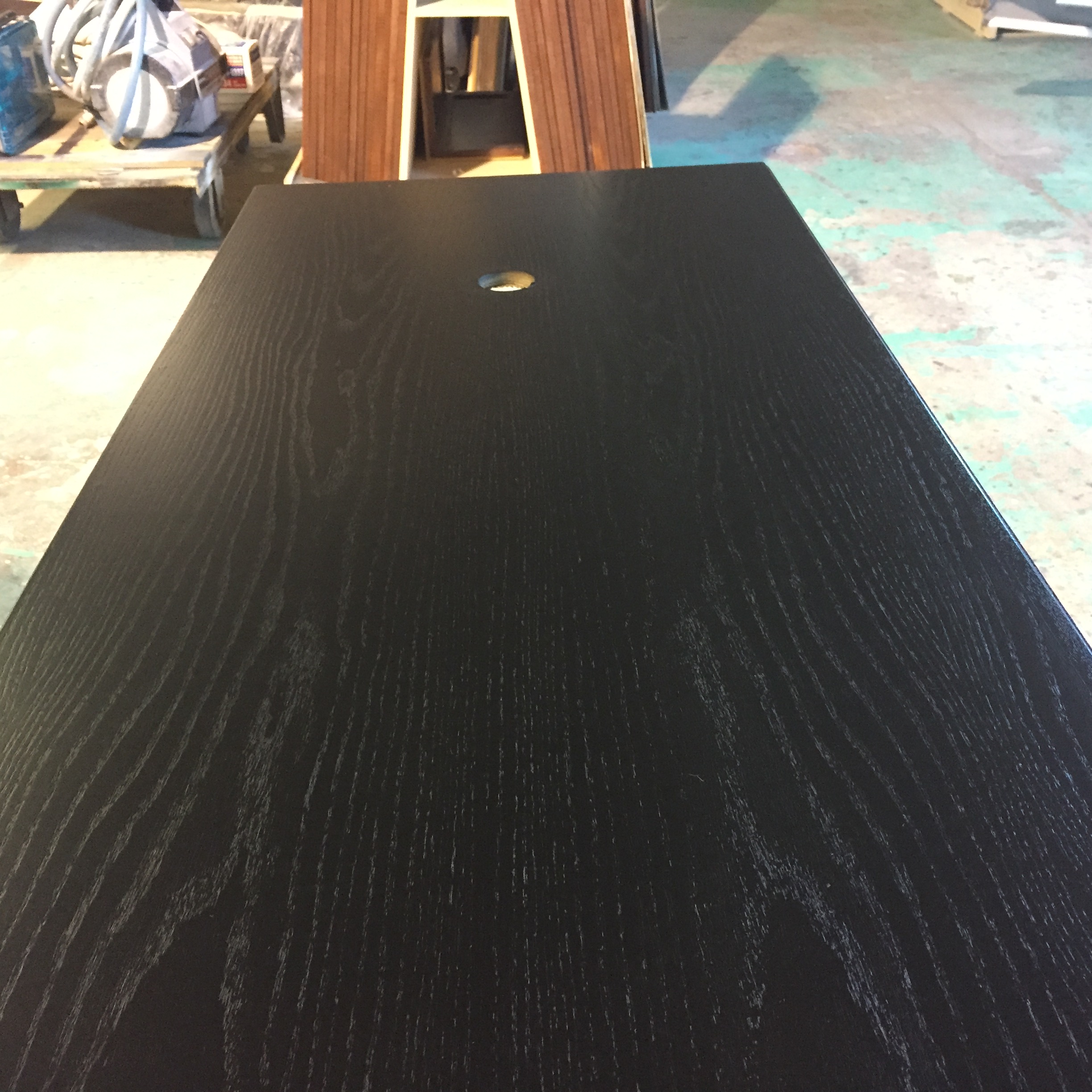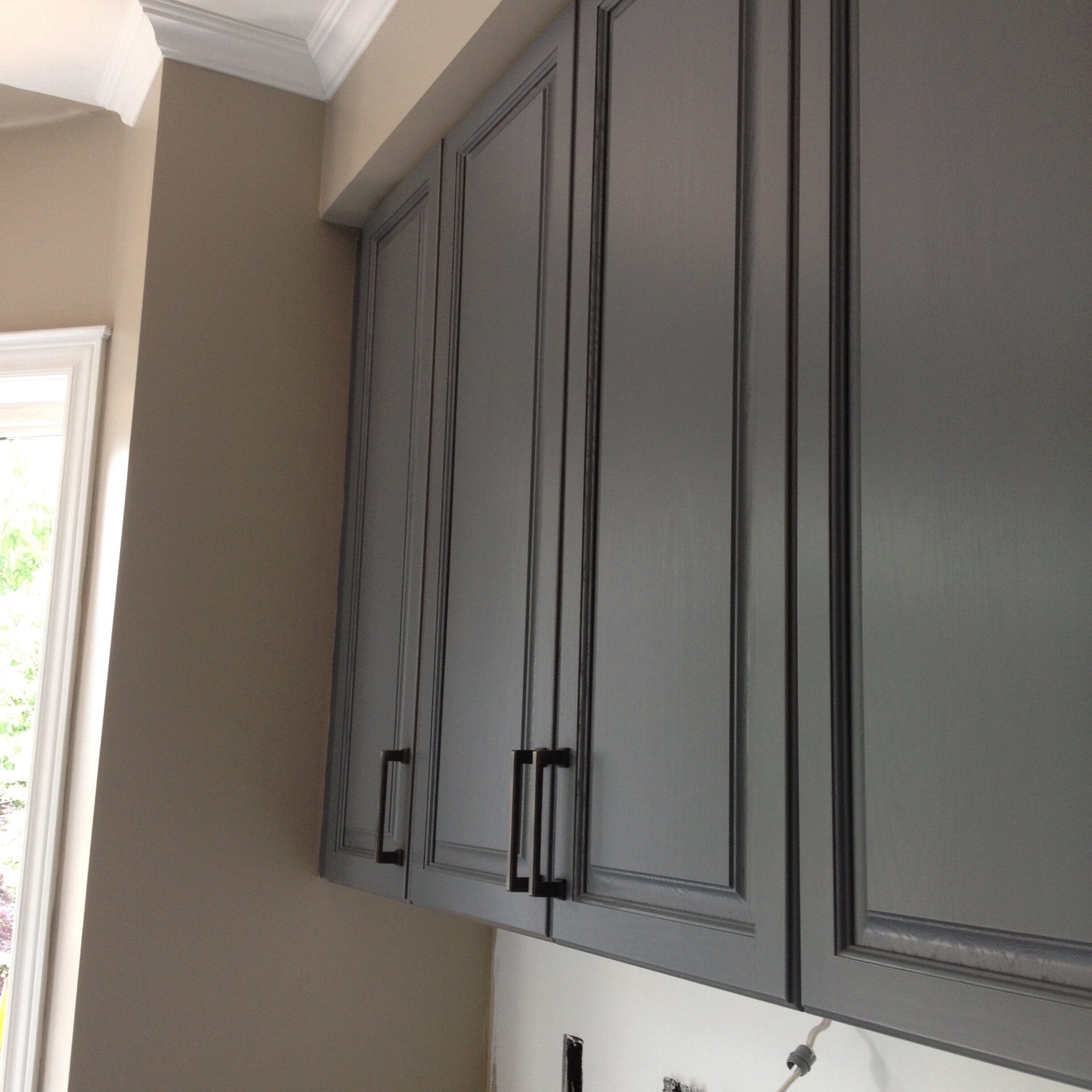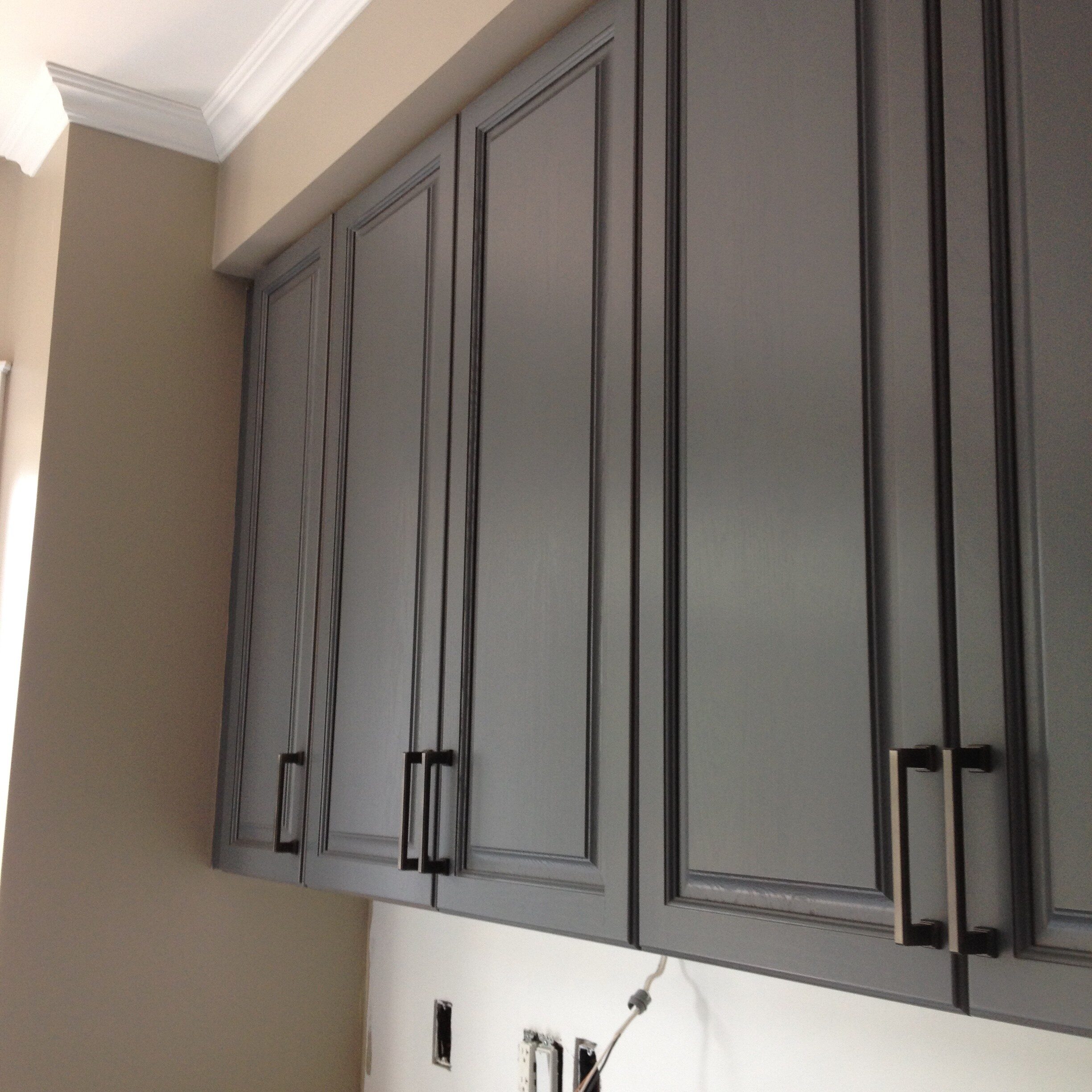 Oak is a very porous type of wood – the gain has deep crevices that cannot be penetrated by the light spray finish created by spray painting equipment – what happens is that spray usually dries prior to seeping down into the gain. On finishes done in white, lighter and mid-tone colours the grain can appear darker and pimple-like after the spray finish is applied. When the boards are painted darker colours (darker browns and greys) the effect is not so dramatic. It’s for these reasons we typically do not paint oak cabinetry a white, off-white, or mid-tone colour.